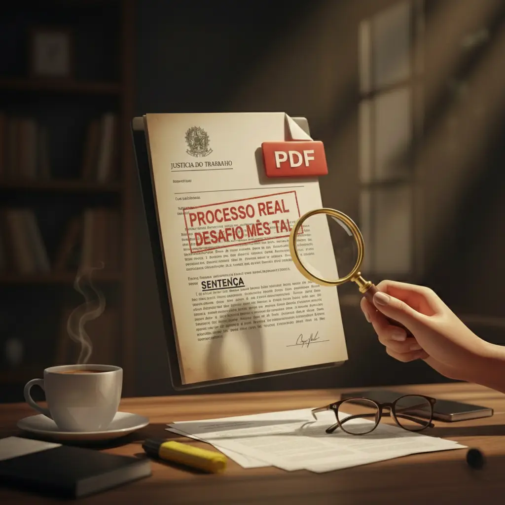 Todo mês, liberamos para você um processo real que transitou em julgado na Justiça do Trabalho. Você recebe a sentença “bruta”, exatamente como ela chega na mesa de um calculista profissional.